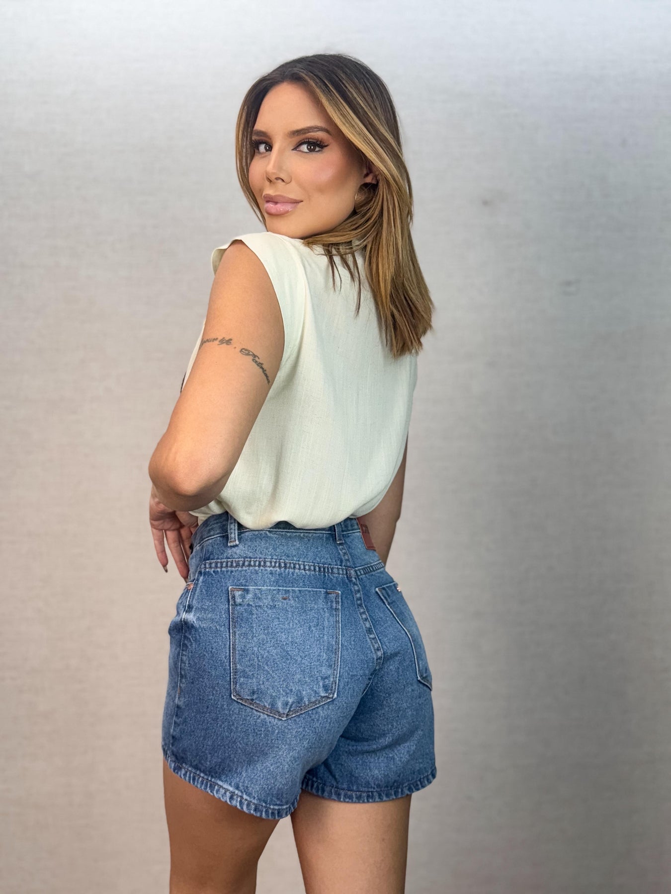 Modelagem: Com corte reto e caimento solto ao corpo, proporciona conforto e liberdade de movimento. As mangas curtas cobrem suavemente a parte superior dos braços, enquanto a gola clássica e o fechamento frontal com botões discretos, no mesmo tom da peça, reforçam seu estilo tradicional e refinado.