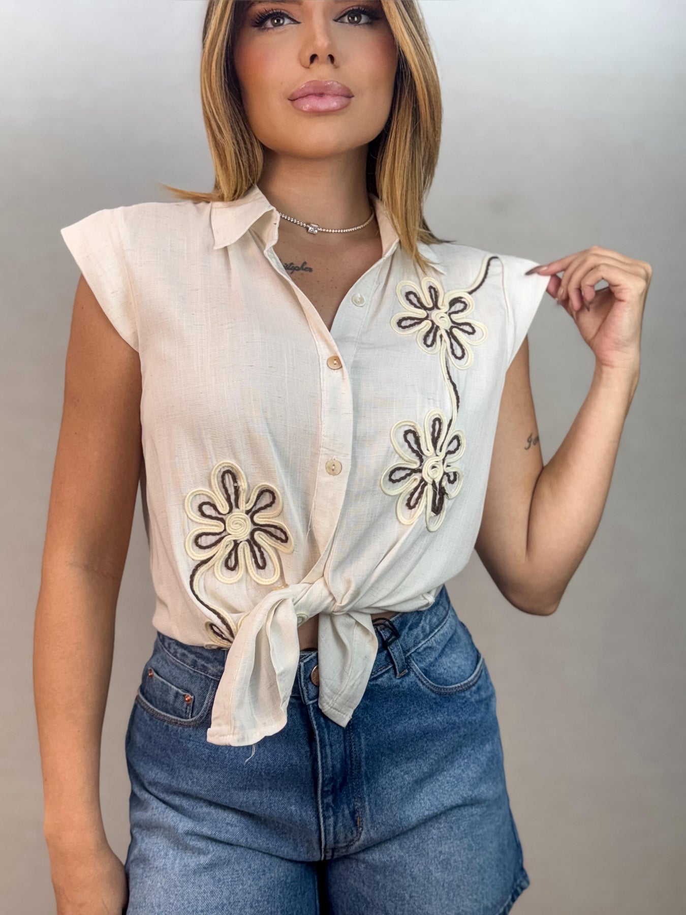 Com charme atemporal e toques artesanais, esta camisa feminina une elegância e delicadeza em uma proposta versátil e cheia de personalidade.