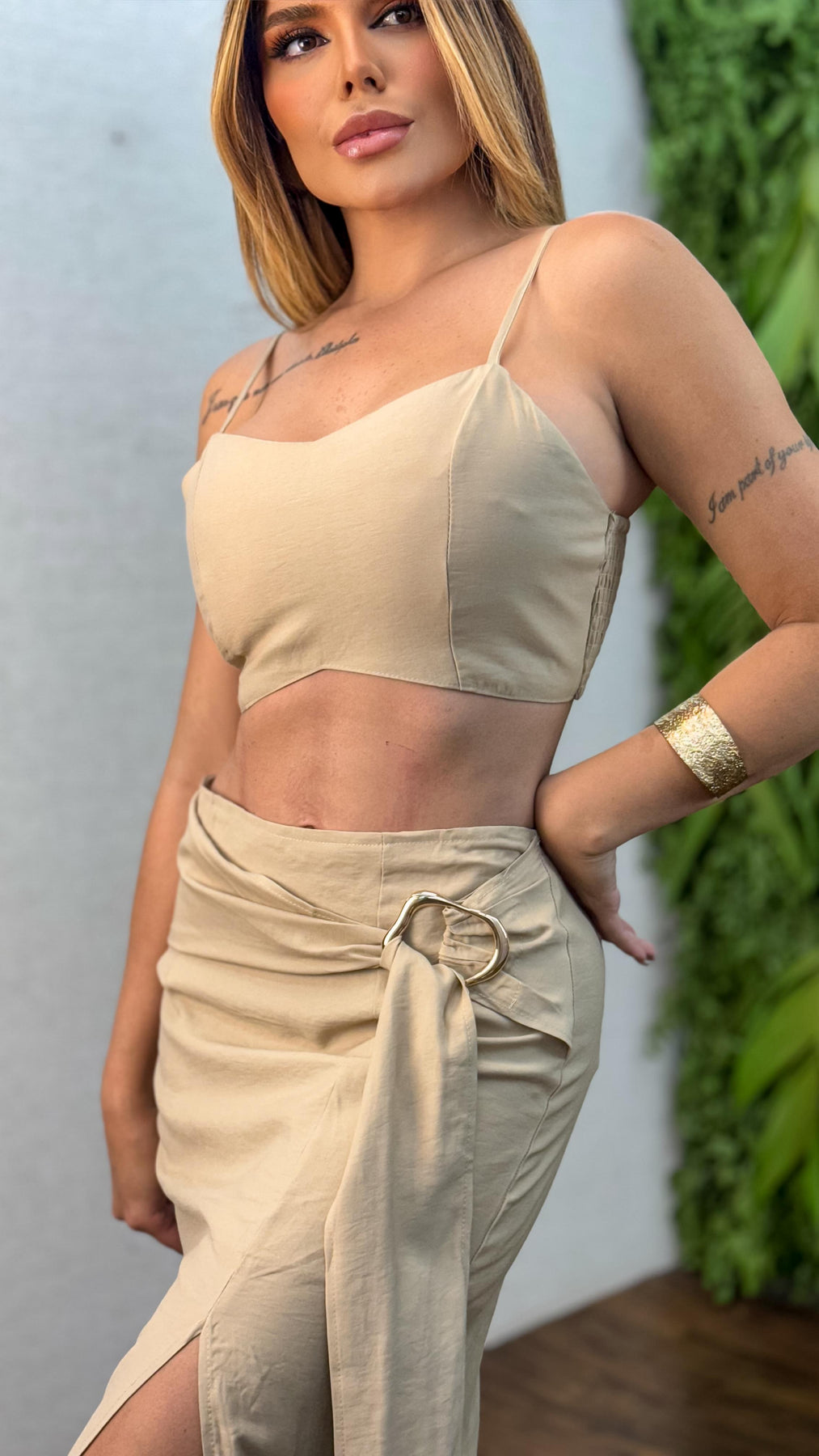 Conj. Cropped Elástico Costas e Saia Faixa Fenda Lateral 24004 (5H)